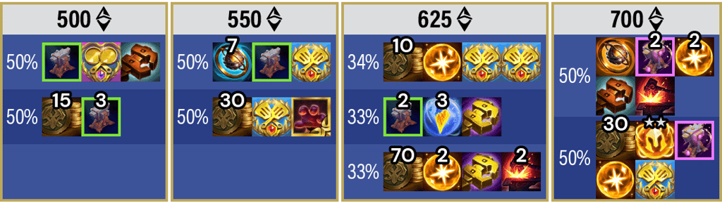 Augment tiers: Gold-Gold-Prismatic unless you take Advanced Loan.