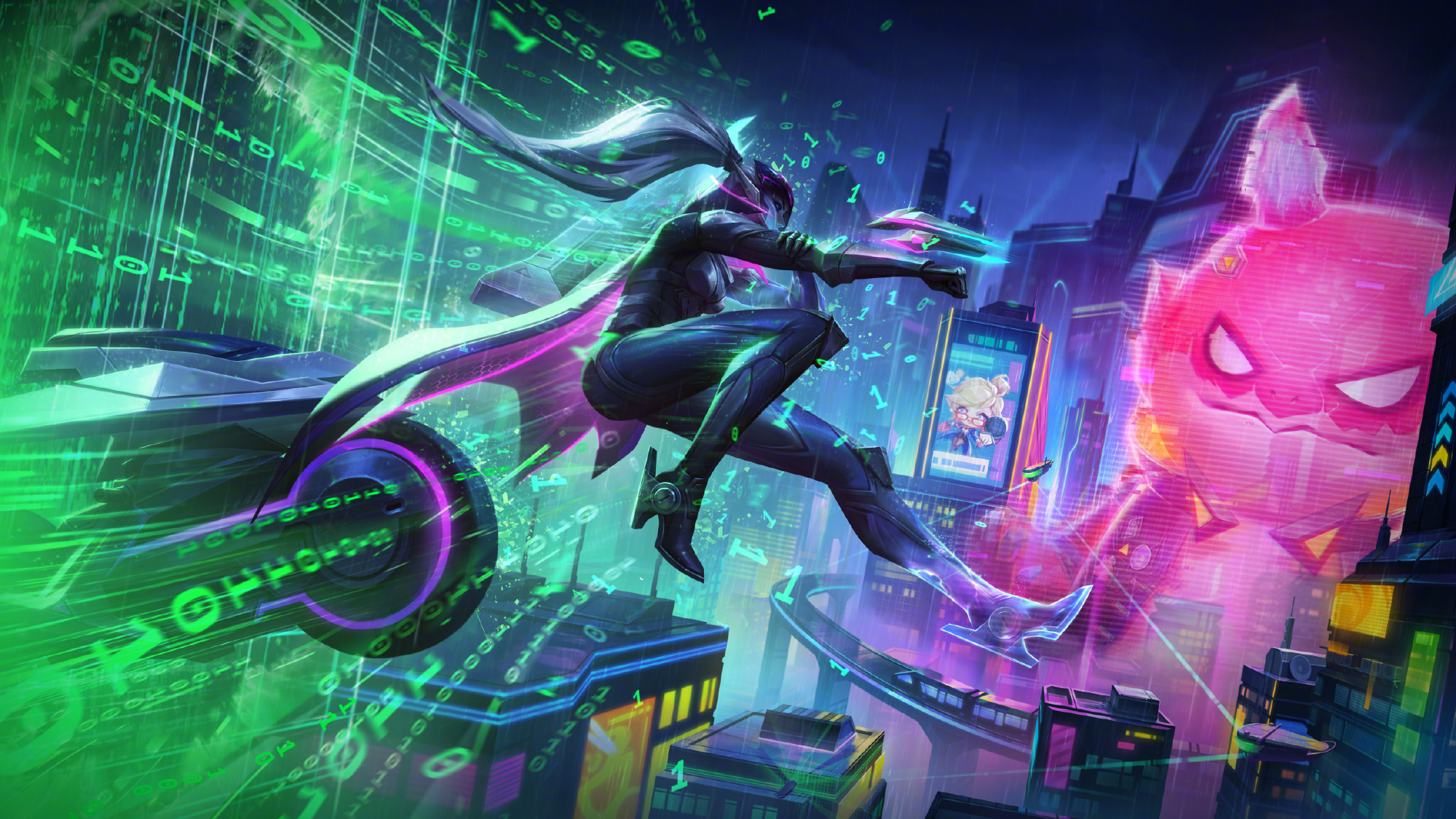 A "hack" animation plays across the screen, and the shop cards glow.