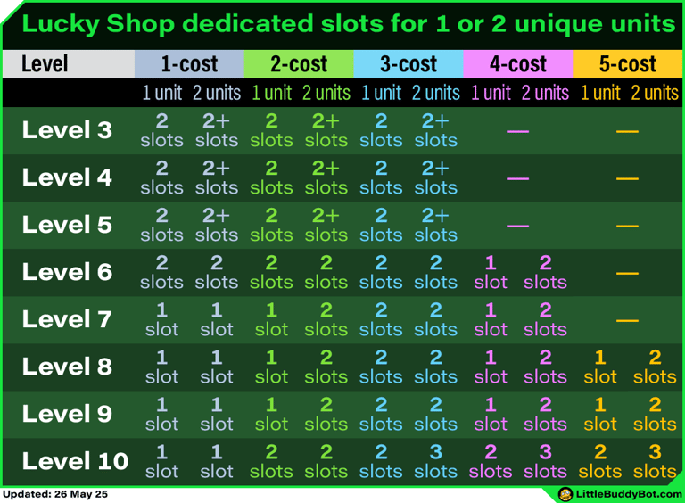 The lucky shop behaves a certain way when you have a small number of unique units on the board, which occurs often at low levels.